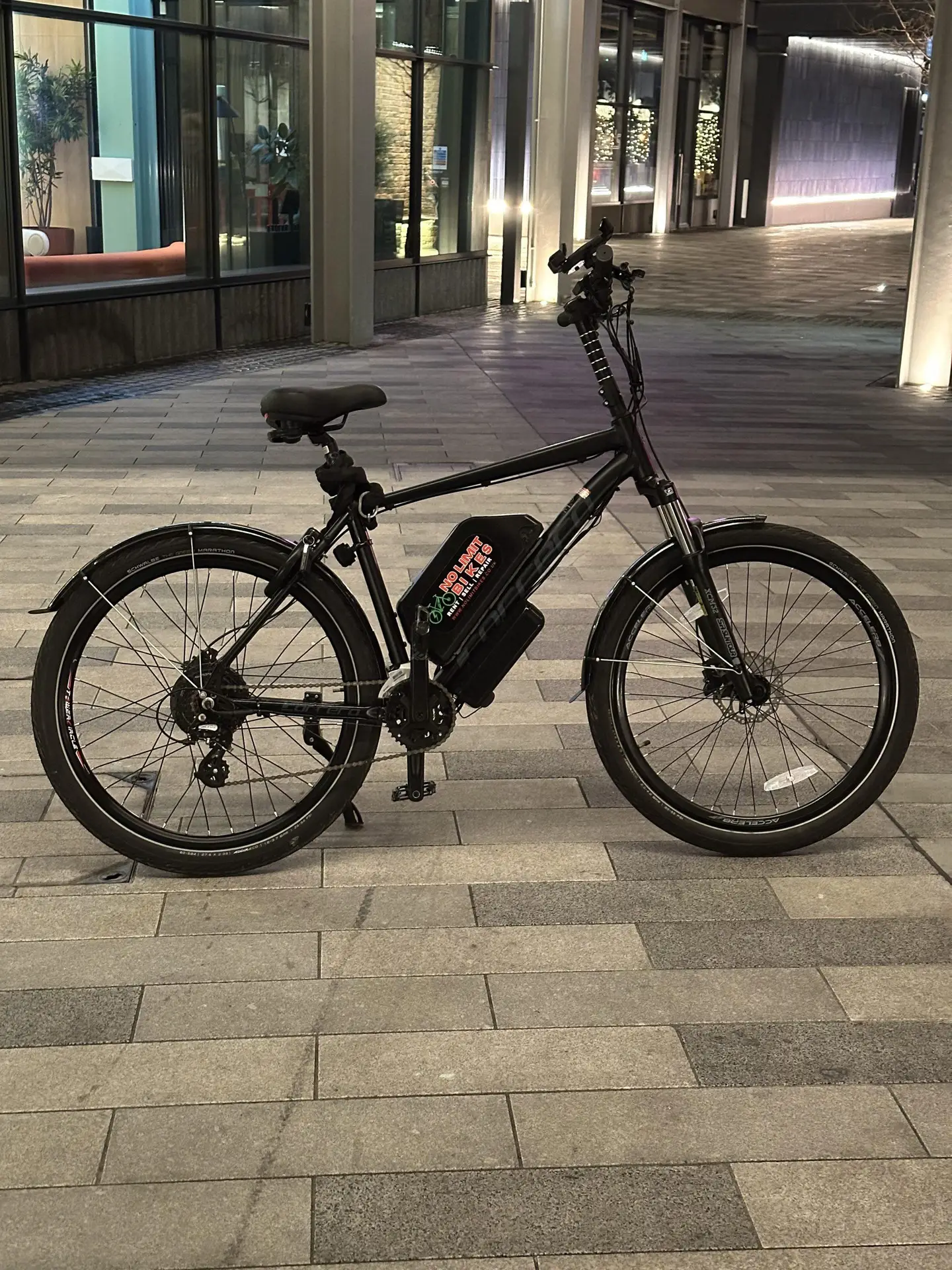 Equipped with big battery, strong rear hub motor and ALL EXTRAS for comfortable work and SECURITY!